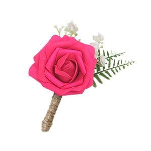 This hot pink foam flower rose wedding boutonniere is long-lasting and will stay in perfect condition for a long time. It's a cheap and realistic boutonniere for wedding ceremony, prom party and homecoming etc.